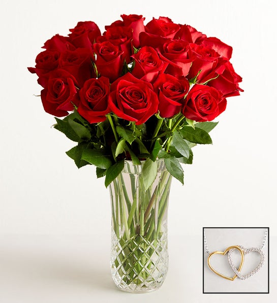 NEW The ultimate in luxury, and a gift that lets them know how much they mean to you. Two dozen carefully selected red roses are gathered in our exclusive Posh™ vase, crafted with artful precision to display the dazzling clarity of traditional lead crystal.